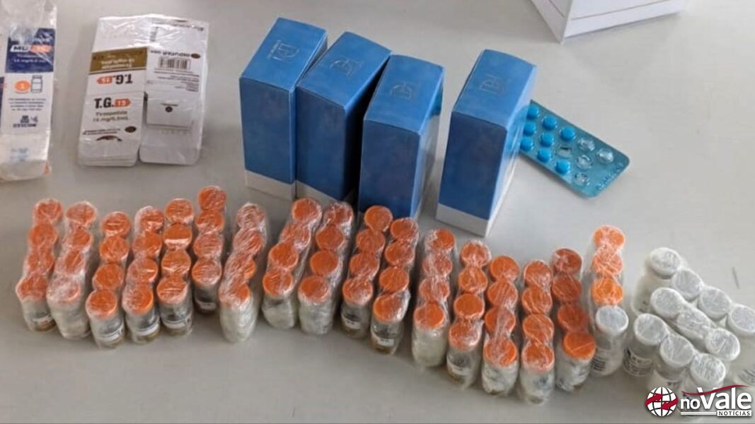 Durante a vistoria no automóvel, os policiais encontraram diversas embalagens de perfumes. No entanto, o peso das caixas levantou suspeitas, já que não correspondia ao esperado para o tipo de produto anunciado. Ao abrirem as embalagens, os agentes descobriram que os frascos originais haviam sido substituídos por ampolas de Tirzepatida e outras substâncias terapêuticas, envolvidas em fitas e plástico preto.