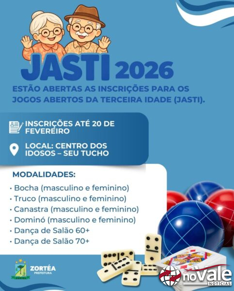 A coordenação do grupo de idosos de Zortéa está com as inscrições abertas para a etapa municipal do JASTI – Jogos Abertos da Terceira Idade. O prazo para inscrição segue até o dia 20 de fevereiro, permitindo que os participantes escolham entre as modalidades disponíveis na competição.