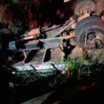 Segundo a Polícia Militar Rodoviária (PMRv), houve a saída de pista de um caminhão nas margens da rodovia estadual, seguida de colisão em árvore e capotamento.