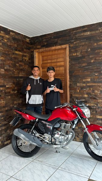 O adolescente adquiriu rifas virtuais e acabou sendo contemplado com uma motocicleta Honda CG Start 160, sorteada pelos influenciadores Iraniel do Grau e William do Brap.