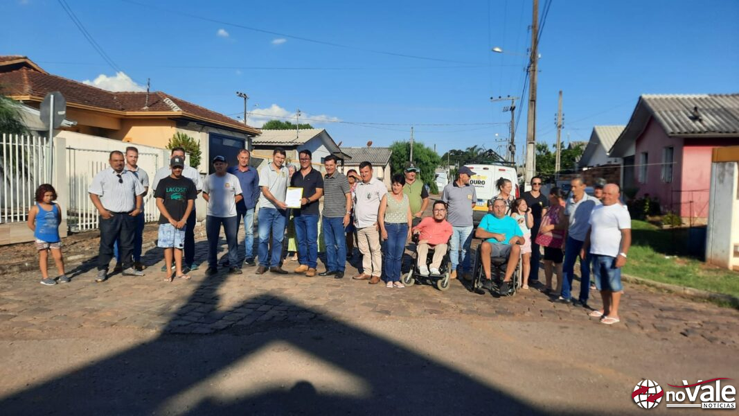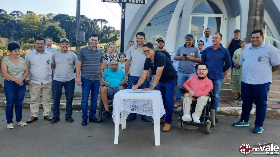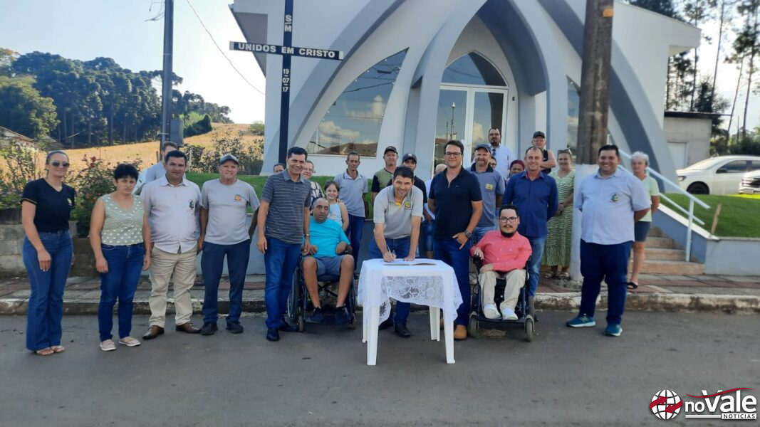 A assinatura da ordem de serviço ocorreu em frente a capela do Bairro Kleinubing com a presença das autoridades do Executivo e Legislativo, membros do Conselho Administrativo e moradores da comunidade, além do representante da empresa executora.