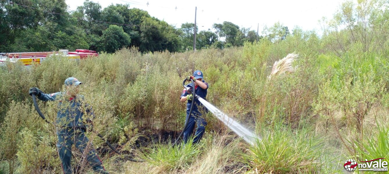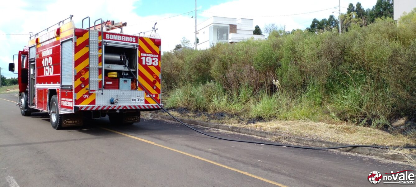O fogo foi registrado na Rua Alameda das Acácias, esquina com a Rua Valdir A. Moreto, no Loteamento Lar Imóveis.