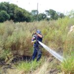 Foram utilizados 500 litros de água, e a área atingida foi de 300 m². Os bombeiros fizeram um trabalho de aceiro para evitar reignições das chamas.