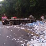A carga de papel reciclado transportada pelo caminhão ficou espalhada sobre grande parte da pista, o que deixou o trânsito intenso na região. A PRF foi acionada para realizar o controle do tráfego e garantir a segurança dos demais motoristas.