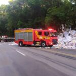 carga de papel reciclado se espalhou pela rodovia e provocou congestionamento