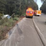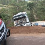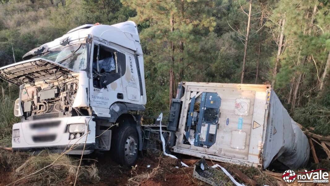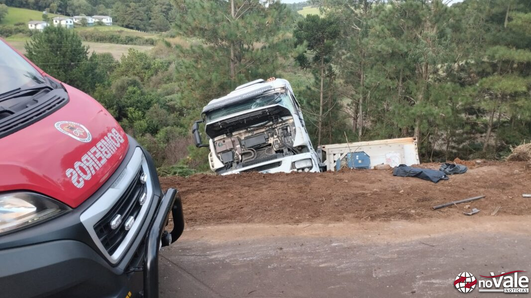 Segundo informações do Corpo de Bombeiros, a carreta, um cavalo mecânico Iveco 410, de cor branca, placas Mercosul, seguia no sentido Caçador quando o condutor perdeu o controle do veículo e saiu da pista.