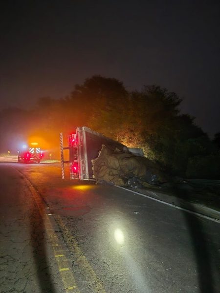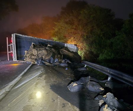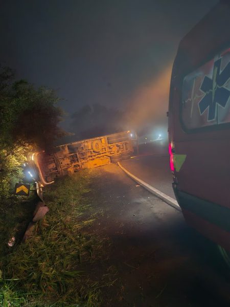 Um acidente de trânsito foi registrado na madrugada desta quinta-feira (30), por volta das 00h30, na BR-153, na altura do km 81, em Irani. A ocorrência envolveu o tombamento de um caminhão carregado com carvão ativado.