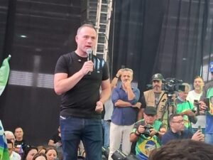 O ex-governador e senador Jorge Bornhausen discursou e afirmou que seu partido apoia João Rodrigues em uma “jornada longa, sem ataques”, defendendo um governo experiente. Ele também cumprimentou a presença do governador do Paraná, Ratinho Júnior, a quem classificou como “o futuro presidente do Brasil”.