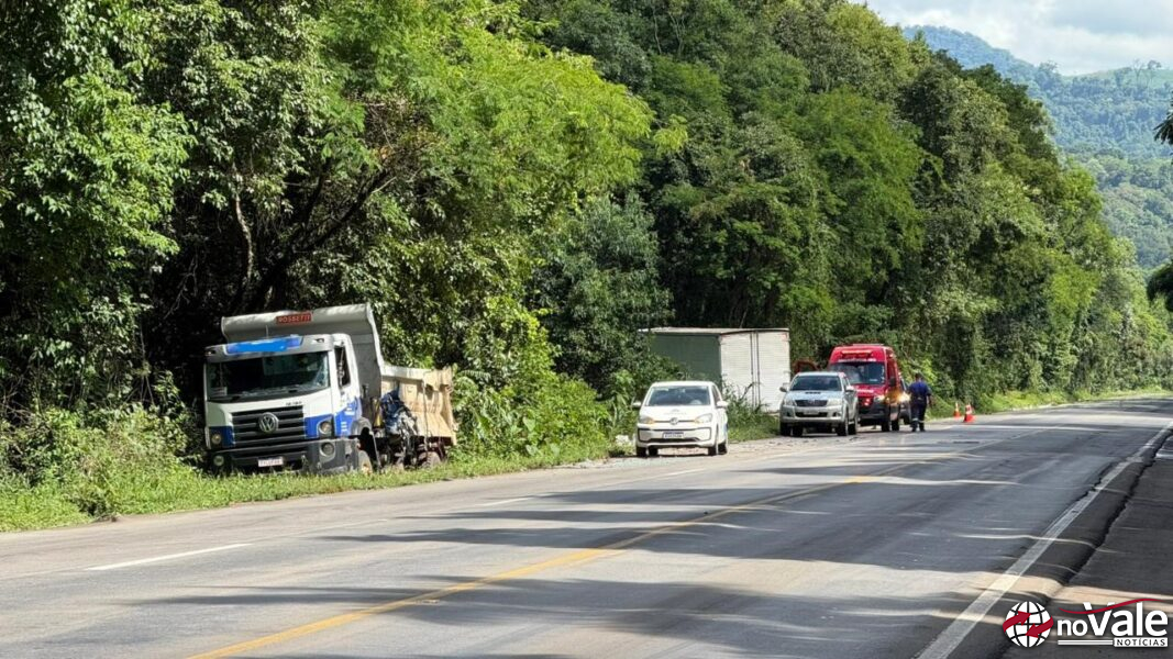 O Corpo de Bombeiros foi acionado para atender a ocorrência. O motorista do caminhão caçamba sofreu apenas escoriações leves e foi atendido no local, sem necessidade de encaminhamento hospitalar.