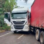 Na tarde desta quinta-feira (20), por volta das 12h51min, um acidente envolvendo dois caminhões Volvo e uma carreta Iveco foi registrado na SC-355, em Videira. A colisão resultou em um homem ferido e no vazamento de combustível na pista.