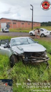 Um acidente de trânsito com lesões corporais foi registrado na tarde desta quarta-feira (31) na BR-282, em Campos Novos. A colisão frontal aconteceu por volta das 13h19, nas proximidades da entrada do motel Saturno.