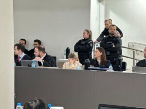 Dos jurados, quatro eram mulheres e três eram homens. Representando o Ministério Público de Santa Catarina (MPSC), estão presentes os promotores de Justiça Rafael Baltazar Gomes dos Santos e Diego Bertoldi. Um assistente de acusação contratado pela família da vítima também participa do júri. Jessica Evelyn Campos Figueiredo Neves é a juíza responsável.