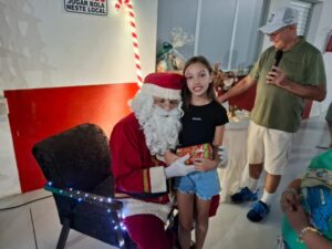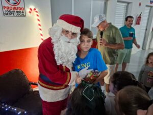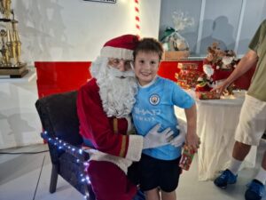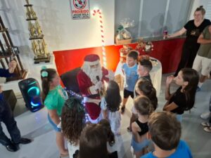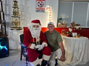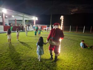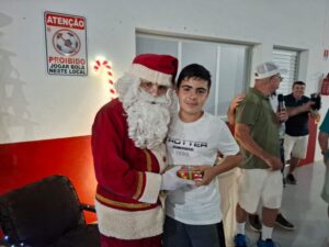Entre os momentos mais emocionantes da noite, a presença do Papai Noel encantou as crianças, que receberam caixas de chocolate e puderam interagir com o “bom velhinho”. O evento também contou com homenagens aos atletas, que foram agraciados com troféus de destaque do ano. Em um gesto especial, as esposas dos jogadores receberam botões de rosa como forma de agradecimento pelo apoio durante a temporada. A confraternização foi encerrada com um delicioso jantar.
