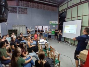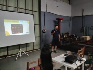 A primeira noite começou com a recepção das inscritas e um momento de integração, seguido da abertura oficial e da introdução aos conteúdos, apresentados por meio de slides e demonstrações diretas nos automóveis.