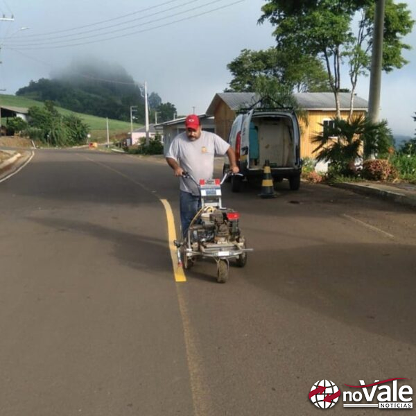 Nesta terça-feira, dia 30, as melhorias foram realizadas na Rua Presidente Kennedy, acesso ao Bairro Kleinubing, e nesta quarta, 31, a meta é melhorar a sinalização do acesso a Vila São José.