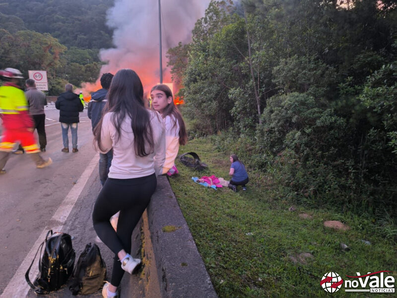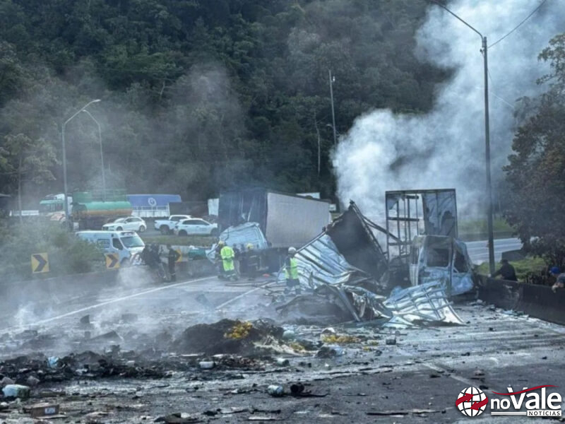 Um grave engavetamento envolvendo duas carretas e uma van interditou completamente a BR-376, no trecho de ligação entre o Paraná e Santa Catarina, na manhã desta quarta-feira (12). O acidente ocorreu por volta das 4h45, no km 667 da rodovia, entre Tijucas do Sul e Guaratuba (PR), a menos de 30 quilômetros de Garuva (SC).