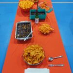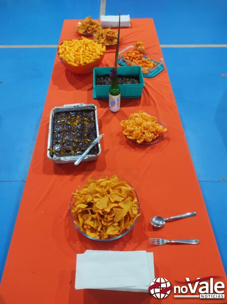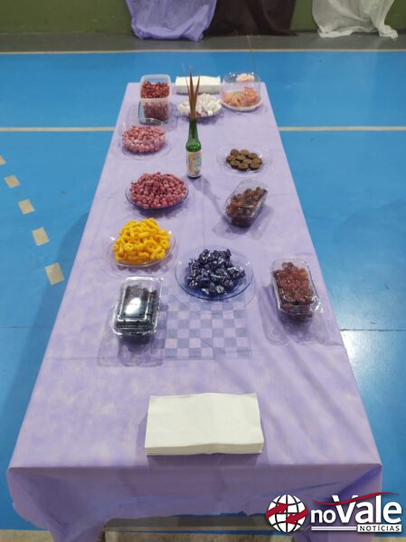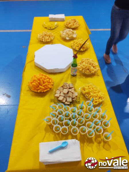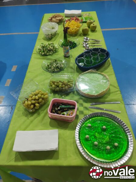 Cada turma da escola recebeu o sorteio de uma cor e foi convidada a trazer alimentos e se caracterizar conforme a cor escolhida, compondo um ambiente vibrante e simbólico. A proposta buscou incentivar o trabalho em equipe e o compartilhamento, reforçando o sentimento de pertencimento entre os alunos.