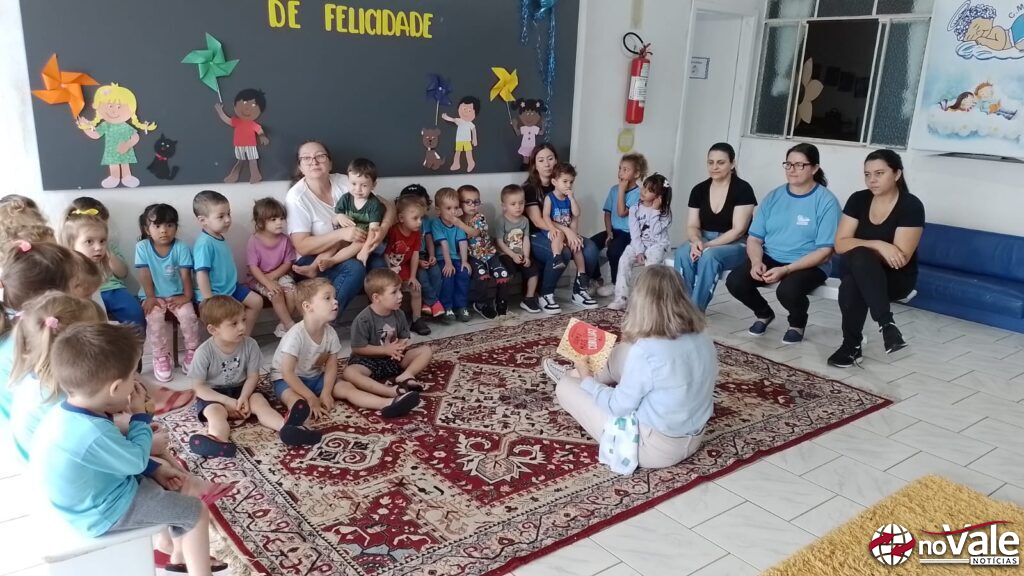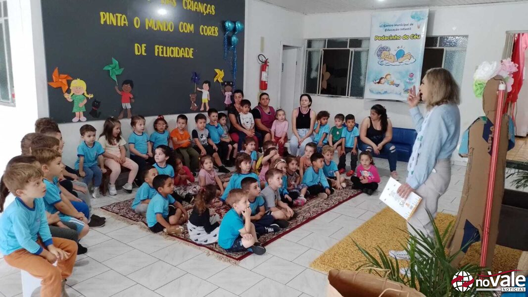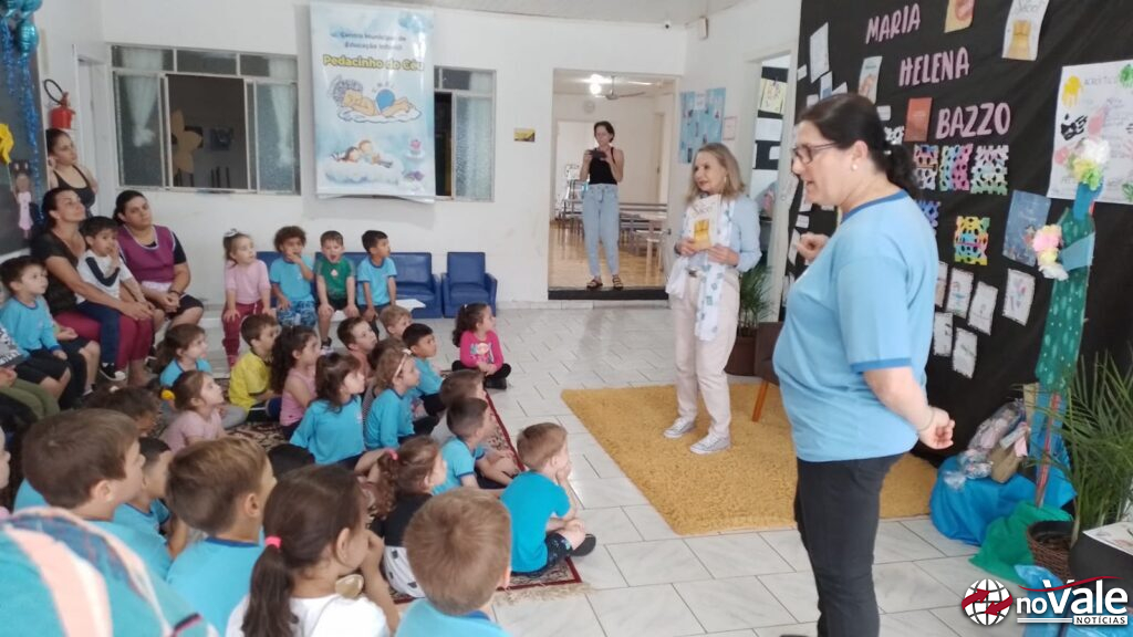 Nesta quarta-feira, dia 23, o CMEI Pedacinho do Céu, localizado no Parque e Jardim Ouro, recebeu a visita da escritora ourense, Maria Helena Bazzo.