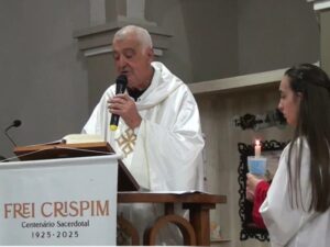 A celebração foi conduzida pelo Frei Ivo Lazzarotto e teve a participação da comunidade de Santa Helena, de Joaçaba, responsável pela liturgia. O encontro reuniu fiéis em um momento de oração e devoção em memória de Frei Crispim.