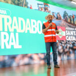 O governador Jorginho Mello lançou, nesta quinta-feira (3), o programa Estrada Boa Rural em Joaçaba. O evento reuniu 202 prefeitos e 114 vice-prefeitos de Santa Catarina. A iniciativa visa pavimentar 2.500 quilômetros de vias rurais em todos os 295 municípios do estado, com um investimento total de R$ 2,5 bilhões.