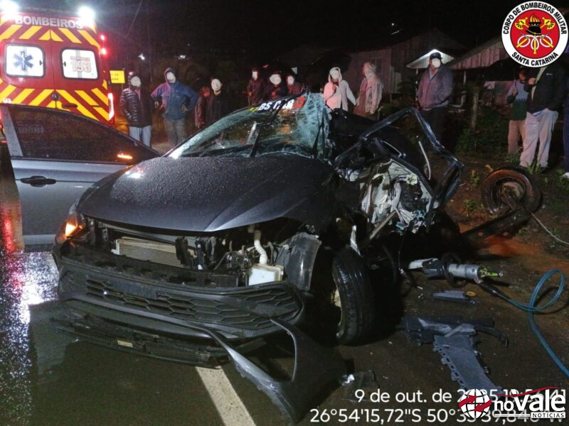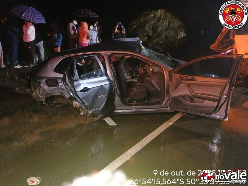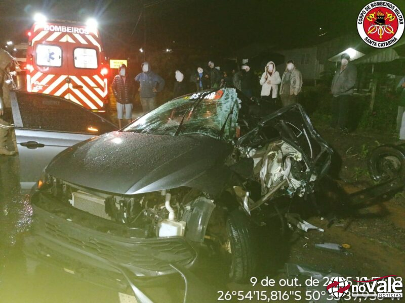 Um grave acidente de trânsito foi registrado na noite desta quinta-feira, dia 9 de outubro, por volta das 19h18min, na rodovia SC-350, na localidade de Rio Bonito, divisa entre os municípios de Lebon Régis e Santa Cecília.