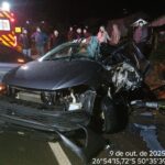 O passageiro dianteiro, de 58 anos, também ficou preso às ferragens. Ele estava consciente, porém desorientado, apresentando ferimentos na face e suspeita de TCE. A vítima foi igualmente retirada em ângulo de 90 graus e conduzida ao hospital.