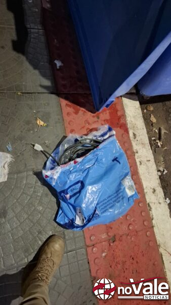 Durante rondas nas proximidades, já na Rua Santos Dumont, os policiais localizaram e abordaram um homem de 24 anos, cujas características coincidiam com as repassadas inicialmente. Com ele, foi encontrado um saco contendo uma extensão de fio elétrico.