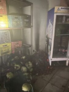 O incêndio, que teve início na área de depósito, ocorreu na fase inicial e foi rapidamente controlado pelos bombeiros. Para acessar o local, uma equipe realizou o corte de energia pelos interruptores gerais e abriu a porta do depósito. Dois combatentes utilizaram um ataque direto, empregando cerca de 100 litros de água, o que evitou que as chamas se espalhassem pelo restante do prédio.