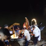 Logo após, começou a caminhada em direção às águas do Rio do Peixe, onde a imagem seguiu em procissão fluvial pelo Rio do Peixe até as imediações da Ponte Irineu Bornhausen.