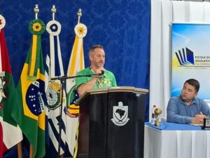 O mestre Valdecir Saretta, presidente da Federação Catarinense de Karatê Interestilos (FECAKI) e técnico da seleção brasileira da modalidade, usou a tribuna para compartilhar a trajetória do Karatê em Capinzal e o recente feito histórico: o título mundial da modalidade conquistado pela equipe capinzalense.