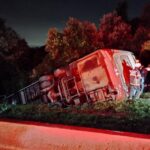 Um ônibus que transportava 37 passageiros saiu da pista e capotou em uma ribanceira, na madrugada desta quarta-feira, dia 14, na BR-282, em Lages, na Serra catarinense.