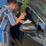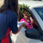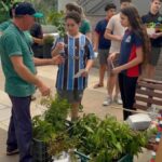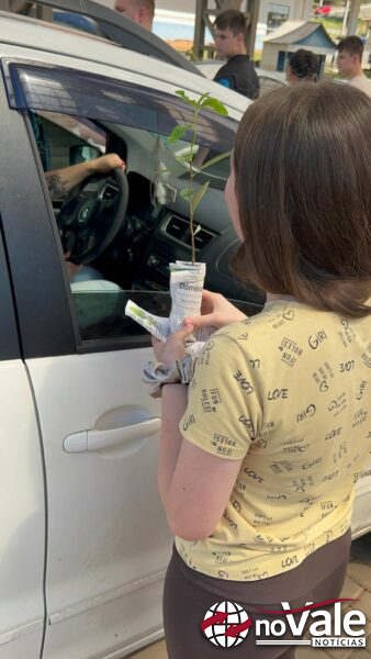 Além das mudas, os alunos também distribuíram um panfleto confeccionado em papel reciclado, produzido por eles mesmos na Escola Sócio Ambiental, reforçando o compromisso com a sustentabilidade e o cuidado com o meio ambiente.