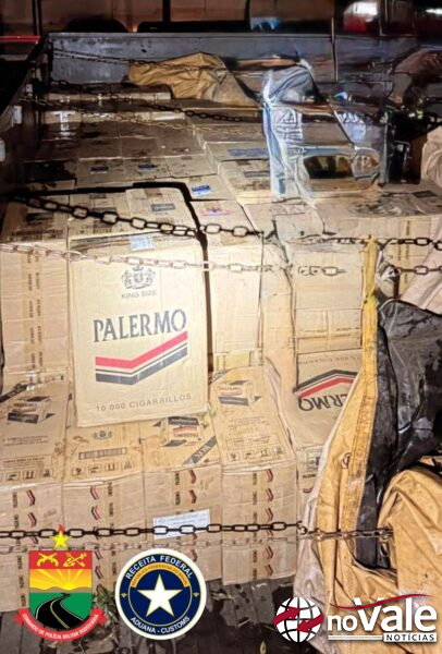 Na fiscalização, os policiais constataram que o veículo transportava aproximadamente 120 caixas de cigarros de origem paraguaia, o equivalente a cerca de 60 mil maços, de diversas marcas.
