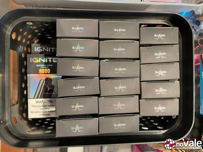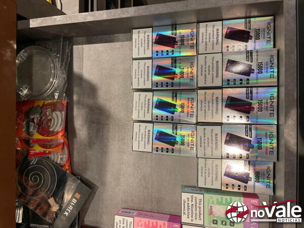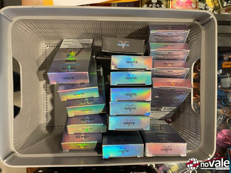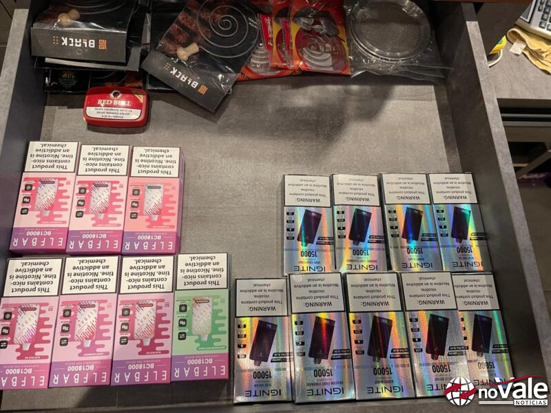 Durante as buscas, dezenas de cigarros eletrônicos foram apreendidos, culminando na prisão em flagrante do proprietário do estabelecimento.