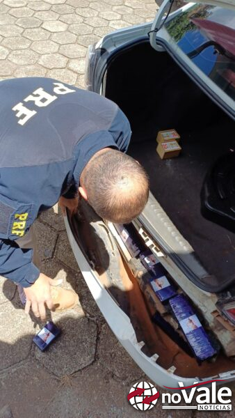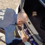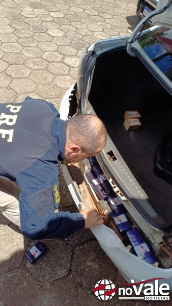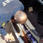 Durante fiscalização do automóvel, os PRFs localizaram pacotes de maconha escondidos nas portas dianteiras e traseiras, além do para-choque.