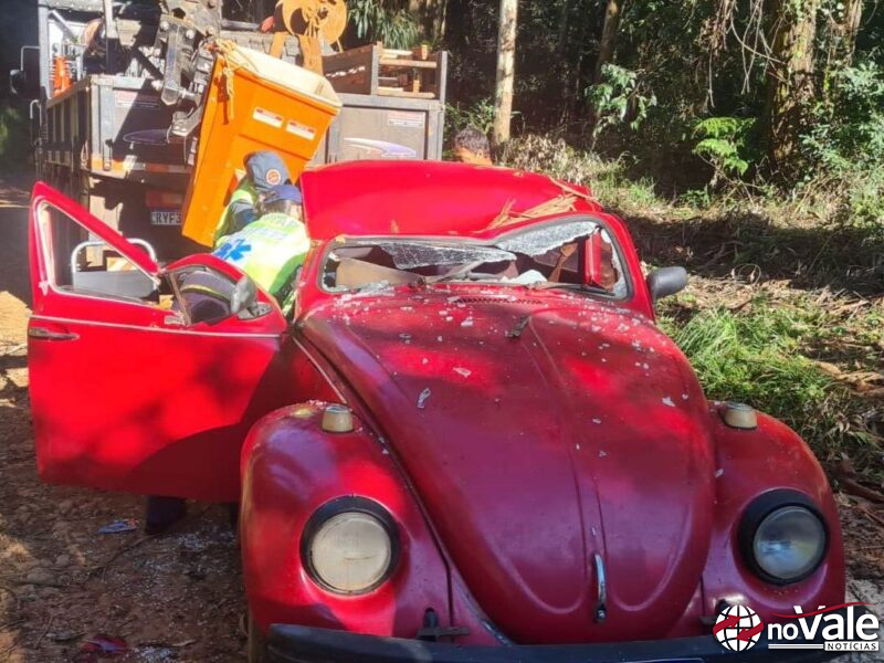A queda de uma árvore em cima de um Volkswagen Fusca deixou três pessoas feridas na manhã desta sexta-feira, dia 31, no interior de Ponte Serrada, no Oeste catarinense.