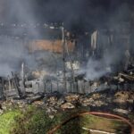 Após gerenciado os riscos, foi montado 2 linhas de combate às chamas e com resfriamento das casas vizinhas.
