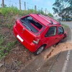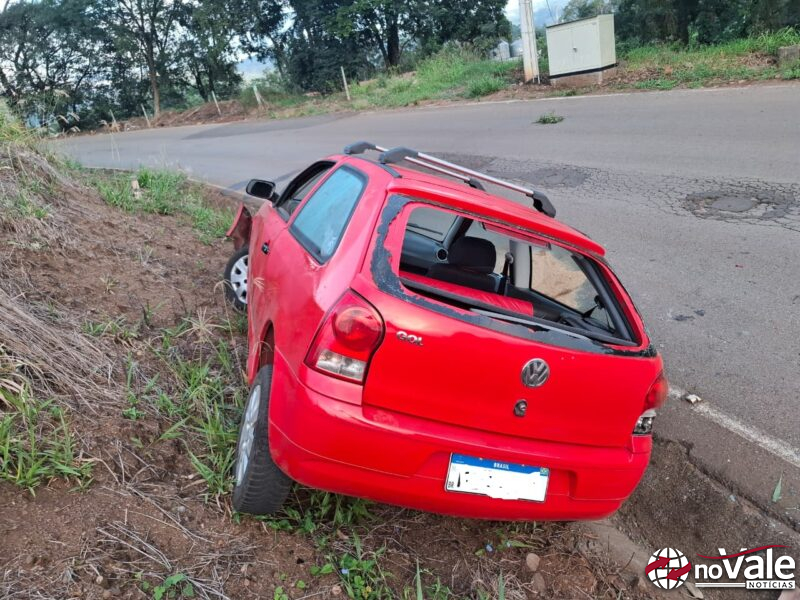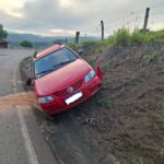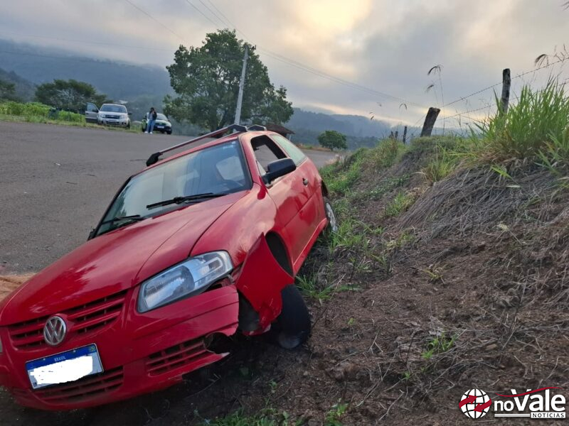 Uma saída de pista de um VW/Gol de cor vermelha com placas do município de Ouro, foi registrada por volta das 06h, deste sábado (04), no acesso ao Distrito da Barra do Leão, no interior de Campos Novos.