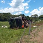 Na tarde desta quarta-feira (14), por volta das 12h30min, o Corpo de Bombeiros Militar, por meio do 6º Batalhão de Bombeiros Militar, atendeu a uma saída de pista seguida de tombamento de uma carreta bitrem, na Linha 15 de Novembro, rodovia SC-160, acesso ao município de Bom Jesus do Oeste, em Santa Catarina.