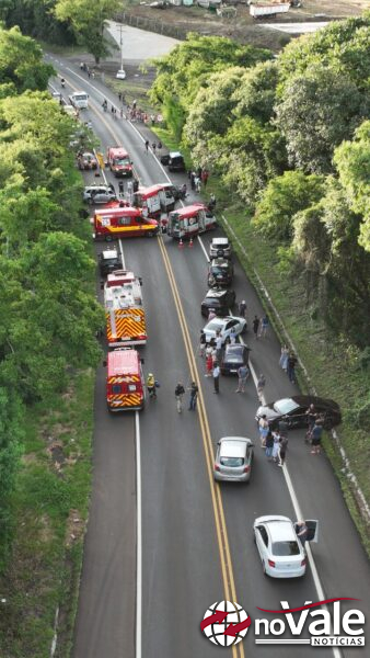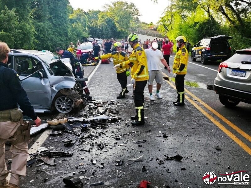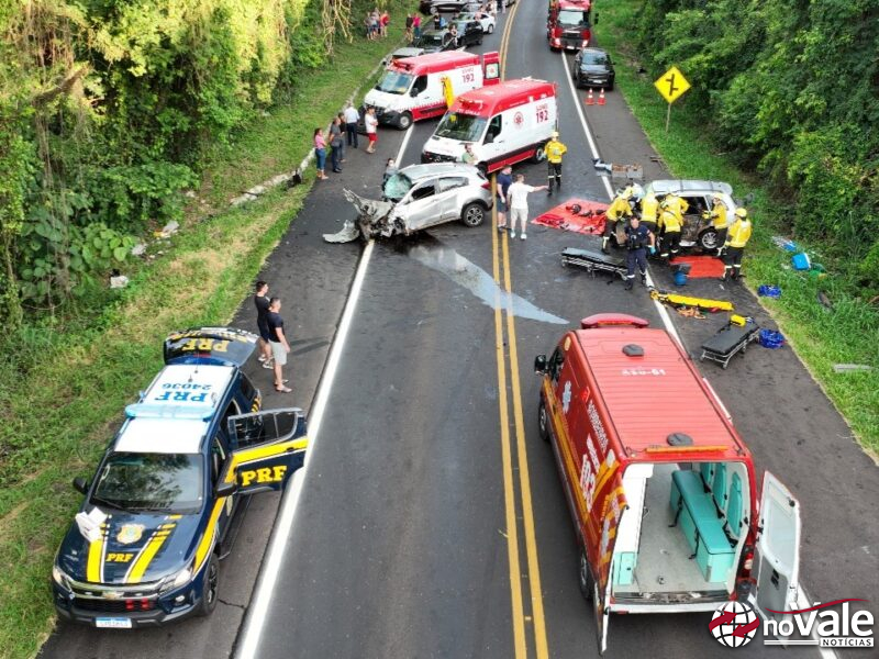Três mortes e dois feridos graves em colisão com quatro veículos na BR-282