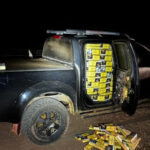 Na picape foi encontrada uma carga de cigarro contrabandeada com aproximadamente 30.000 maços da marca Hudson, de origem Paraguaia.