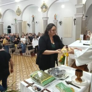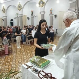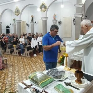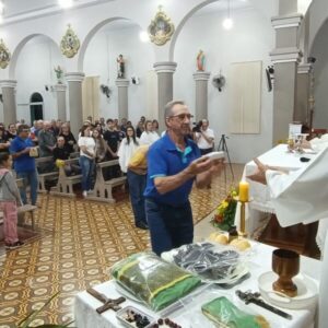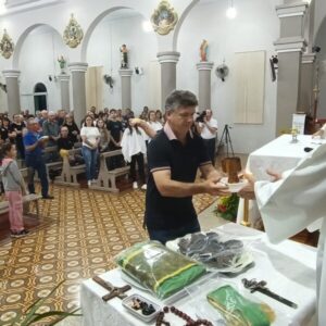 Fiéis participaram de missa com bênção de envio e apresentação de símbolos que serão entregues durante a 1ª Caminhada da Graça