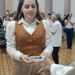 Um dos destaques foi a bênção de envio dos participantes da 1ª Caminhada da Graça, novidade que integra a romaria neste ano. Durante a missa, também houve a apresentação de símbolos que serão entregues ao longo da caminhada.