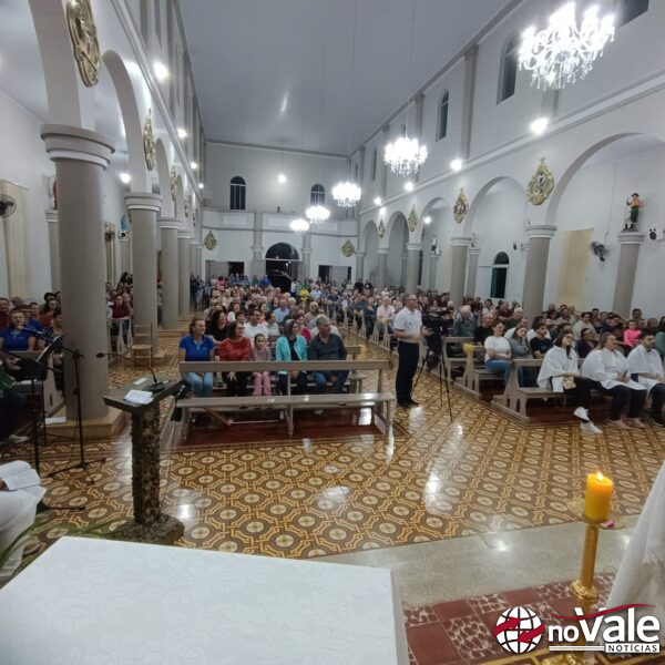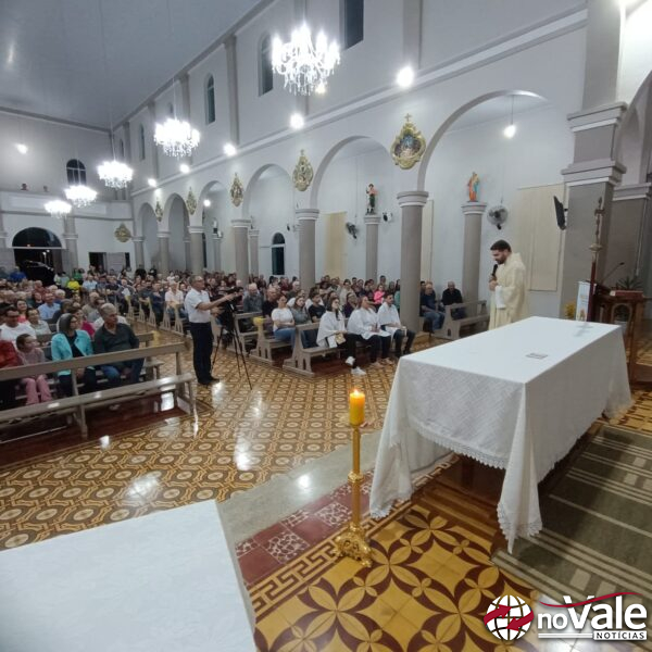 A igreja do Distrito de Santa Lúcia, em Ouro, ficou lotada na noite desta sexta-feira (22) para o encerramento das novenas preparatórias da 26ª Romaria de Frei Crispim. A nona noite do momento de fé contou com grande participação da comunidade e superou as expectativas da organização.