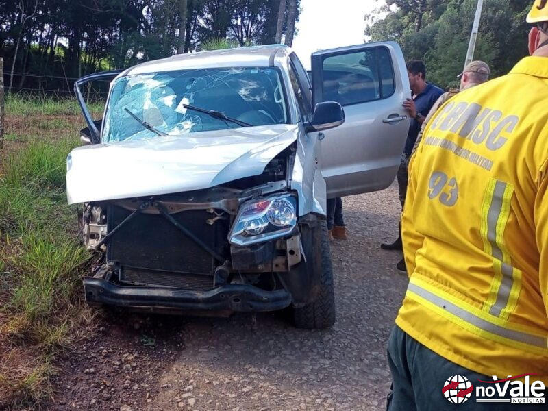 Após ser imobilizado com colar cervical e maca rígida, foi encaminhado ao hospital de Campos Novos.